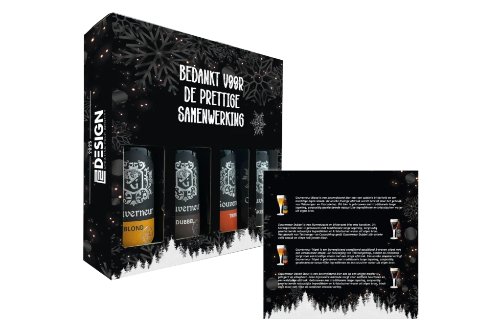 Het einde van het jaar nadert en dat is de perfecte gelegenheid om waardering te tonen. Bedank uw medewerkers, klanten en zakenpartners met een persoonlijk en doordacht eindejaarsgeschenk. Onze zorgvuldig samengestelde geschenken zijn de ideale manier om het jaar in stijl af te sluiten.